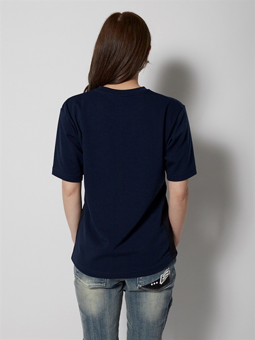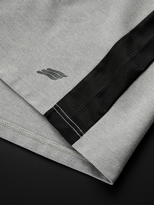 風合いがよく、なめらかでやわらかいレーヨン混のコットン生地を使用しています。厚手で型崩れがしにくく、ほどよいコシがある素材です。また、ムレ感を軽減する吸湿性の高さもこの生地の特徴です(綿60%・レーヨン35%・ポリウレタン5%)。脇部分は通気性のよいメッシュ素材で切り替えています。