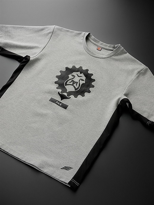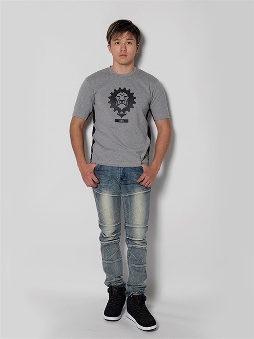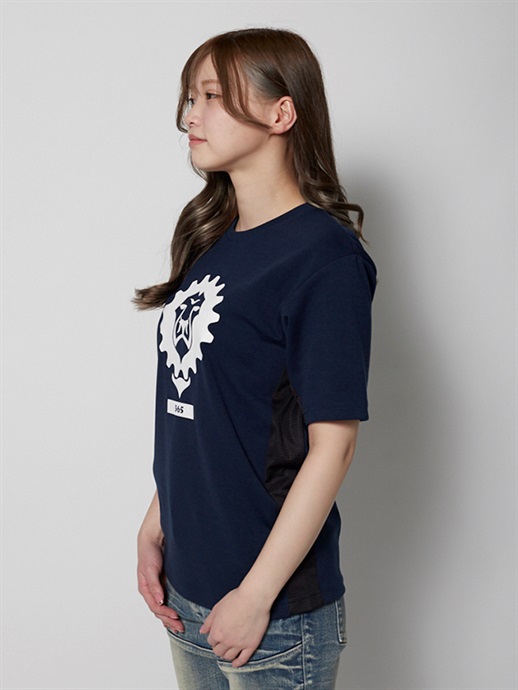フロントのライオンデザインプリントが特徴。脇部分は通気性のよいメッシュ素材で切り替えを採用。夏場の通気性を考慮した仕様です。