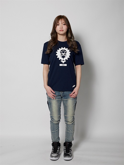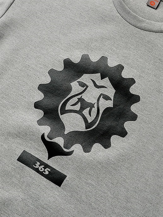 アニマルキャラクター“ライオン”を胸にプリントしています。左裾にクレストマークのプリント入り。