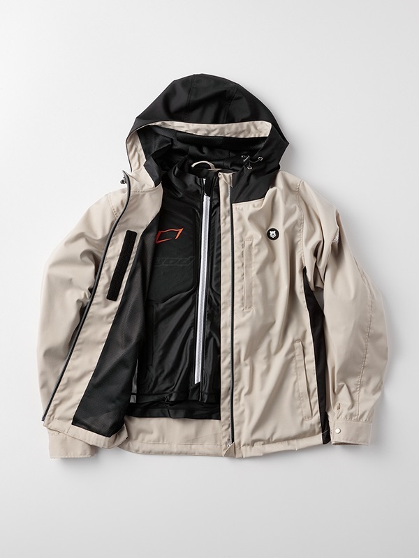 ジャケットの内側にHYOD D3O®チェストプロテクターを装着するアタッチメント(面ファスナー)を装備しています。ワンピースタイプのチェストプロテクターは2カ所で、ツーピースモデルは左右それぞれ1カ所で固定することができます。