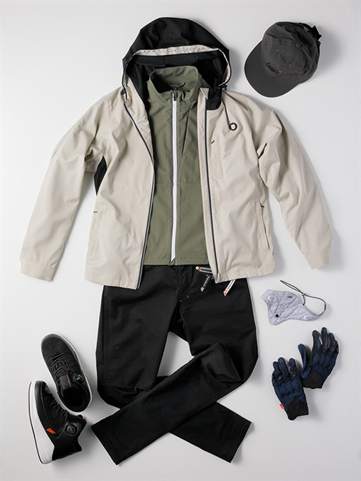 フードのバタつきが気になる場合は、フード本体をコンパクトに畳んでおくことができます。高速道路などの走行シーンや自分の好み、TPOに応じて使い分けることができるのもフーデッドスタイルの特徴です。