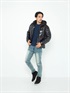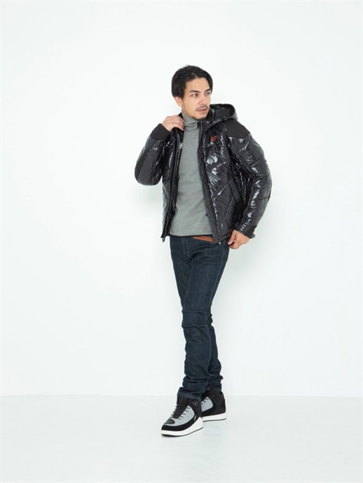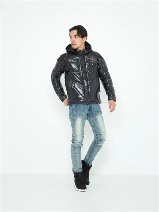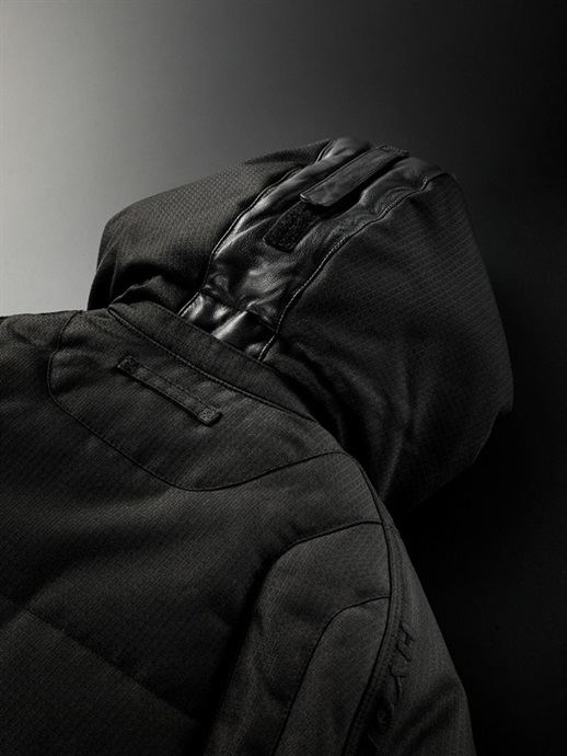 フードは着脱式で、部分的にレザーを組み合わせることで大人のカジュアル感を演出しています。真冬のバイクシーンからアウトドアシーンまでさまざまなシーンで着用可能なウインタージャケットです。