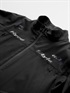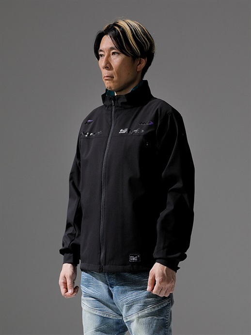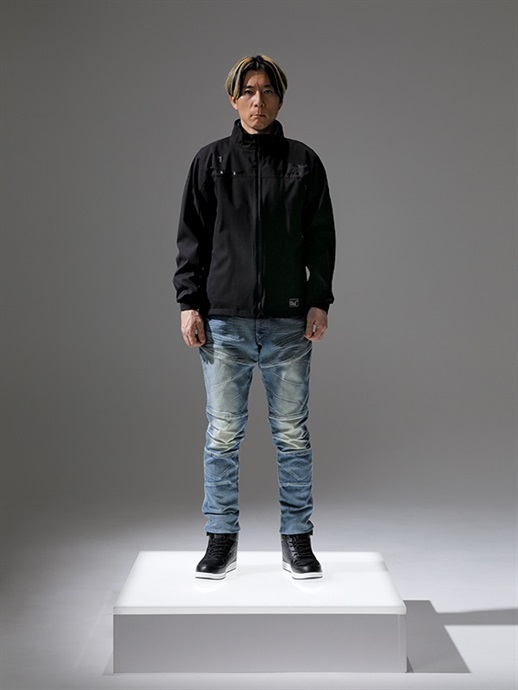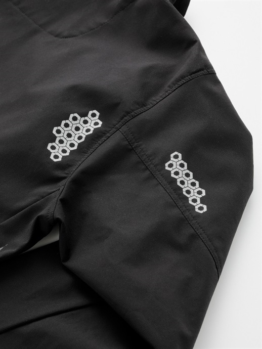 アウターシェルは、表地と裏地の間に耐水・透湿素材をボンディングした3レイヤー生地を採用することで、簡易防水性を備えたアウターシェルとなります。裏地は肌触りがよく、ストレッチ性もあるトリコット生地を採用することで、快適な着心地を実現しています。