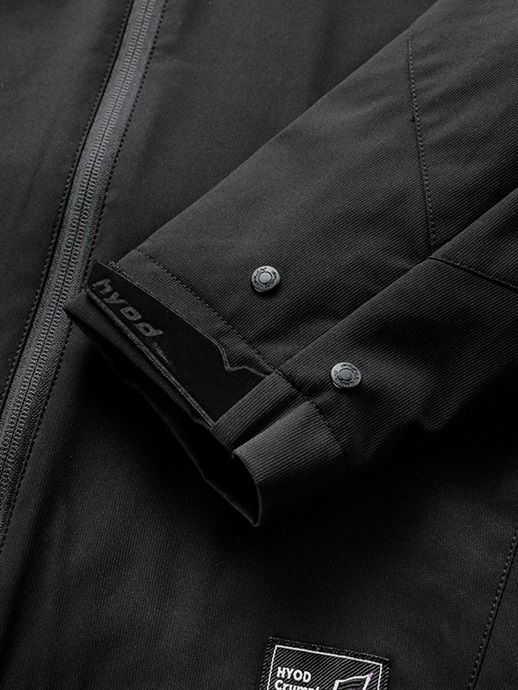 アウターシェルとインサレーションウエアの袖口にはそれぞれプラホックを備えており、ツーリング先でクイックにアウターシェルとのジョイントが可能です。また、インサレーションウエアの袖の長さ、裾の長さはアウターシェルのインナーとして着用することを考慮した長さとしているため、アウターシェルと組み合わせた際にゴワつかず、収まりの良さが特徴です。