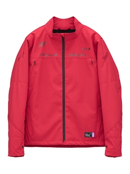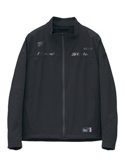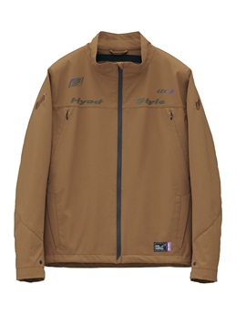 胸にHYODロゴをプリントしたスポーティーなデザインのアウターシェル。適度に高さのあるスタンドネックを採用し、フロントファスナーが首に当たるのを防ぐガードも備えています。