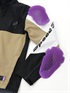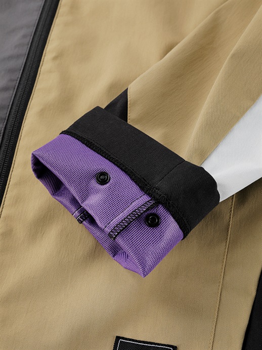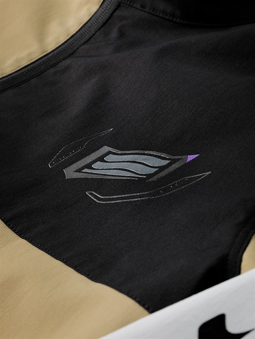袖口はベルクロでフィット感の調節が可能。グローブに合わせて調節することで、寒風の侵入を防ぐことができます。袖口の内部にプラホックを備えていますので、インサレーションウエアとのジョイントが簡単に行えます。