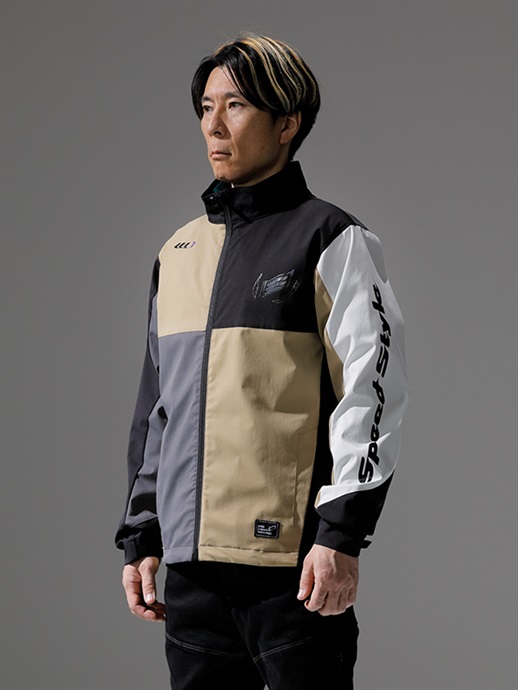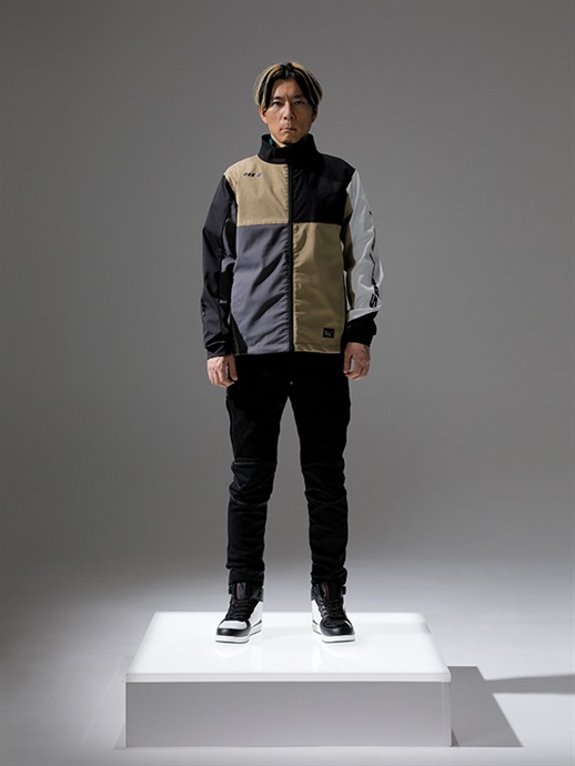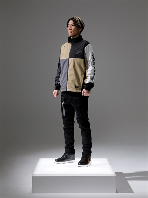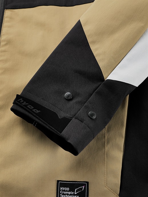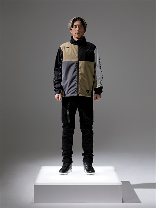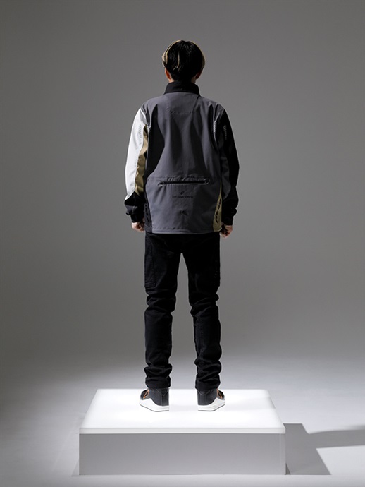 胸にHYODクレストマークを配置し、両袖と両脇にもロゴをレイアウト。適度に高さのあるスタンドネックを採用し、フロントファスナーが首に当たるのを防ぐガードも備えています。