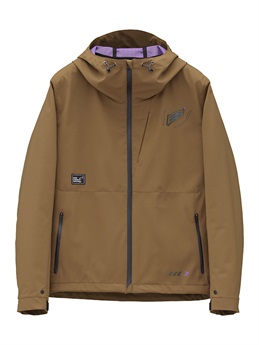 表地と裏地の間に耐水・透湿素材をボンディングした3レイヤー生地を採用したアウターシェル。裏地は肌触りがよく、ストレッチ性もあるトリコット生地を採用することで、快適な着心地を実現しています。