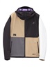 ひときわ目を引く表生地にはリサイクル原料を使用したコットンライクな素材に撥水加工を施し、裏地との間に耐水・透湿素材をボンディングした3レイヤー生地を採用。簡易防水性を備えたアウターシェルです。