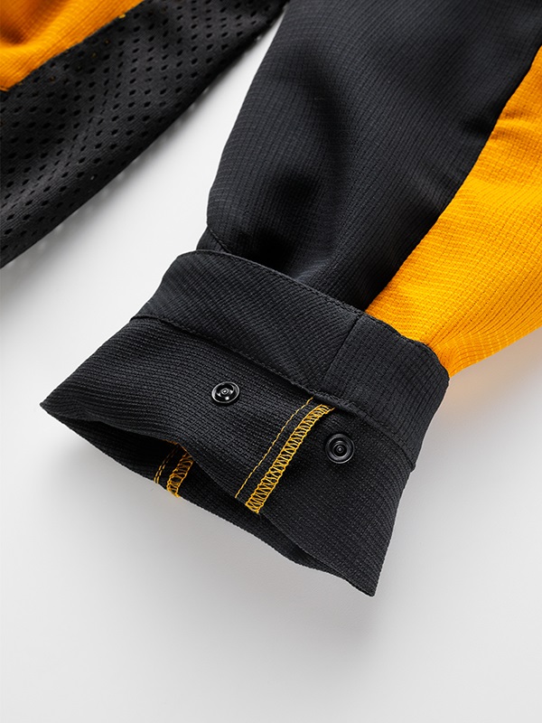 パッカブル機能を備え、携行性にも配慮。さらに拡張型ロードウエアコンセプトにより、オプションインナーの装着や収納にも対応し、気温やシーンに合わせた柔軟なレイヤリングが可能です。袖口のベルクロや裾のドローコードでフィット感を調整でき、チェストプロテクターアタッチメントも装備。背中と脇のリフレクタープリントが視認性を高めます。