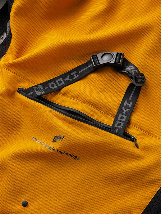 メインマテリアルには、高機能素材「NAGARE」を採用。優れた通気性が走行風を積極的に取り込み、HYOD UCHIMIZUを上回る吸汗速乾性能により、汗をかいてもサラサラとした状態を保ちます。超軽量かつ撥水加工を施したライナーレス仕様は、真夏のライディングでも軽快な着心地を実現。脇下のビッグホールメッシュがエアフローをさらに高め、空気を味方につけた走りを支えます。