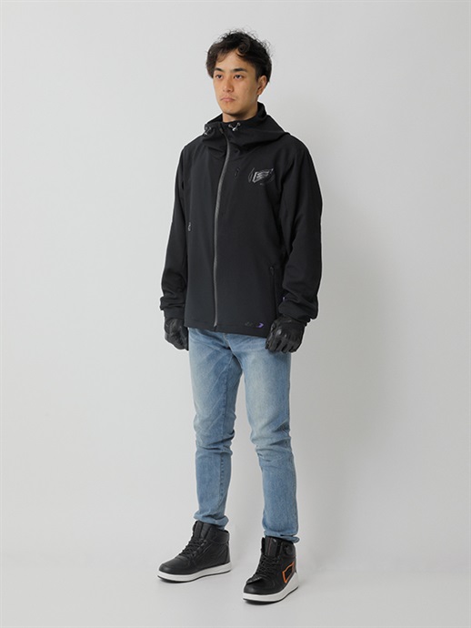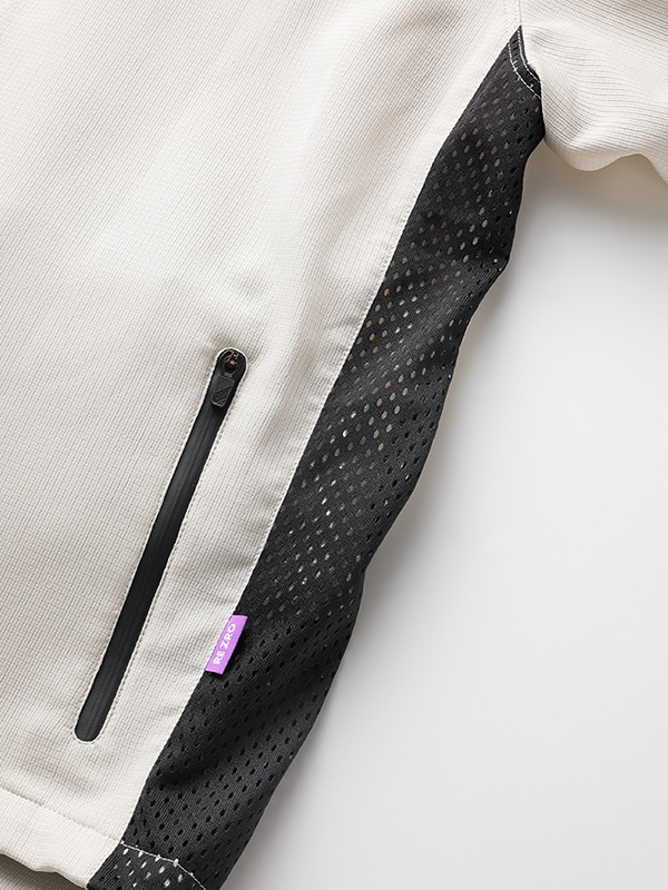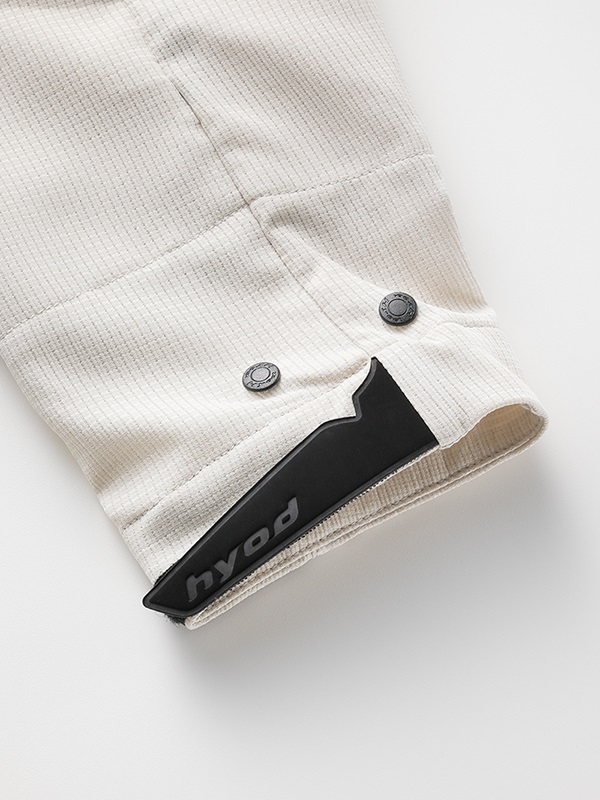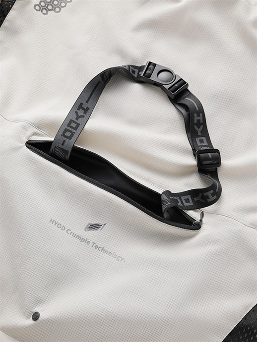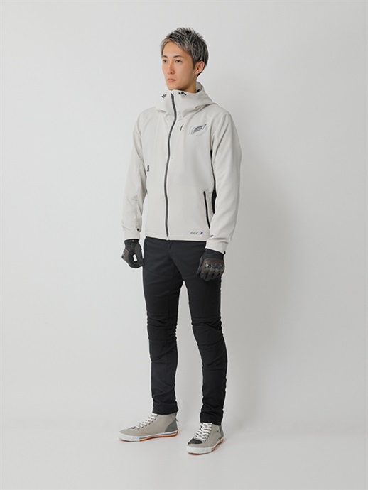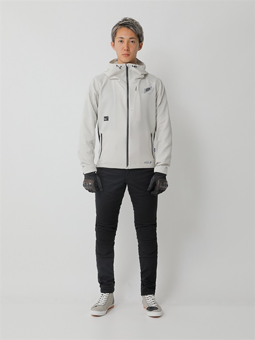 季節限定生産 EVOKE “Argo Air”は、HYOD ROAD WEARコンセプトを体現するEVOKEシリーズの中でも、よりオーセンティックでミニマルなデザインを採用したフードスタイルのサマージャケット。主張しすぎない佇まいの中に軽さと機能性を凝縮し、日常の延長線上で自然に着られる一着として仕上げています。 パターンには、ライディングとストリートの最適なバランスを追求したHYOD EVOKEパターンを採用。ほどよいシルエットを基調に、ライディング時の姿勢や身体の動きにスムーズに追従する設計とすることで、走行中も街中でも違和感のないフィット感へと整えました。 メインマテリアルには、高機能素材「NAGARE」を使用。優れた通気性が走行風を取り込み、HYOD UCHIMIZUを上回る吸汗速乾性能により、汗をかいてもサラサラとした状態を保ちます。超軽量かつ撥水加工を施したライナーレス仕様は、真夏のライディングでも軽やかな着心地を実現。脇下のビッグホールメッシュがエアフローを高め、空気を味方につけた走りを支えます。 ショルダーとエルボーには、RE ZROプロテクター(CE規格 LEVEL1)を装備。軽量で通気性に優れ、薄く柔軟でありながら必要な強度も備えた次世代型プロテクターで、リサイクル性に優れた素材を採用することで環境への配慮もあわせ持たせています。オプションでRE ZROバックプロテクターの装着にも対応。 ハイネックパーカスタイルはドローコードで調整でき、フードはコンパクトに収納可能。走行時のバタつきにも配慮した設計としています。フロントとサイドポケットにはワンタッチでロック可能なオートロックファスナーを採用し、袖口はベルクロ、裾はドローコードでフィット感を細かく調整できます。 パッカブル仕様は、ゴムベルトとバックルを用いた携行性の高い構造。収納時は持ち運びしやすく、通常使用時には腰ポケットとして活用できる実用的な設計です。EVOKEインナーなどの収納にも対応し、チェストプロテクターアタッチメントやオプションインナー装着にも対応。背中と脇のリフレクタープリントが視認性を高めます。 胸元には上品なHYODクレストロゴをさりげなく配置し、キーポケットも備えることで実用性にも配慮。オーセンティックなデザインは街中にも自然に馴染みます。 EVOKE “Argo Air”は、軽さと通気性、そして拡張性を備え、静かな存在感の中でサマーシーズンのライディングを軽やかに楽しみたいライダーに向けた一着です。
