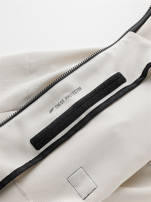 D3O®素材を採用したチェストプロテクターは、薄くしなやかで身体の動きに自然に追従。装着していることを意識させない快適なフィット感を実現しながら、万一の衝撃を効果的に吸収します。胸部は特に守りたい重要な部位のひとつ。自分自身はもちろん、大切な人を悲しませないためにも備えておきたい装備です。ワンピースとツーピースをラインアップしています。