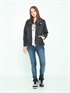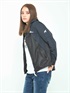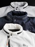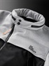 オフセットされたフロントファスナーが特徴のライディングマウンテンパーカー。