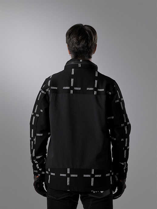 上腕にはフィット感を高めるアジャスターを装備しています。伸縮性のあるドローコードが快適なフィット感を実現し、走行時のバタつきを抑えます。ストリートシーンでのシルエットを強く意識した「HYOD365パターン」がベースですが、ライディングにも対応する美しいシルエットを誇ります。
