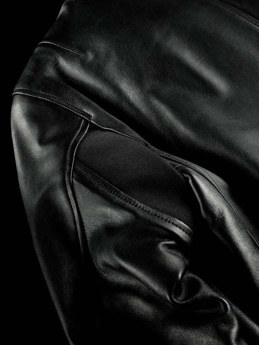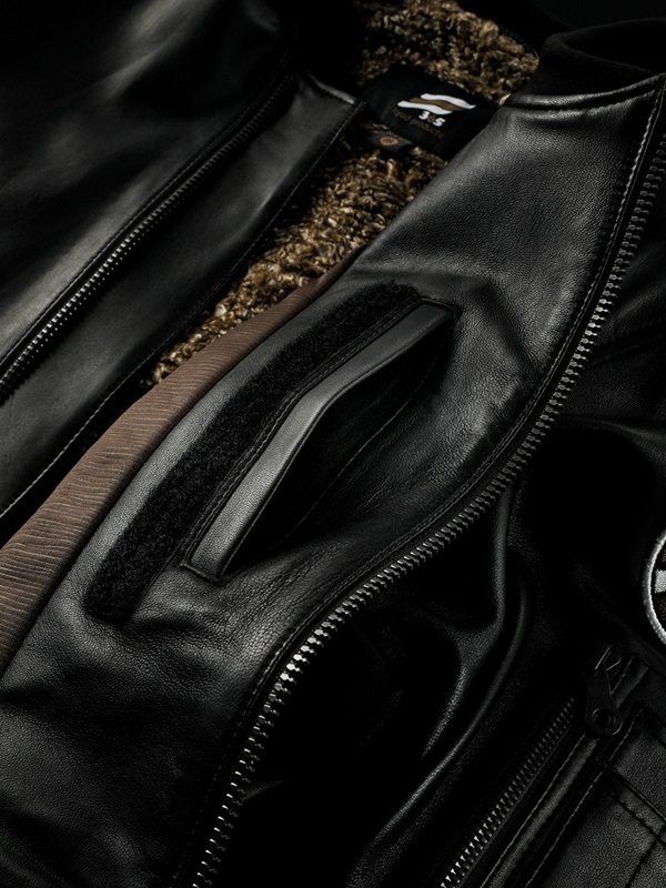 素材にはやわらかな着心地のシープレザーを採用。襟・袖口の柔らかなリブ、左上腕の365ベアワッペン、シガーポケット&ペンホルダーなど特徴的なデザインが魅力です。左胸部分にはアクセントとなるオリジナルスタッズをレイアウトし遊び心を演出しています。胸内側には別売オプションのチェストプロテクターが装着可能なアタッチメントを装備しています。※肩・肘・背中には別売のD3O®プロテクターを装備することができます。