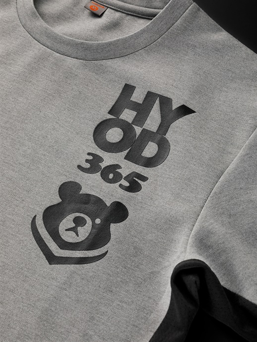 HYODの愛されキャラ、“365BEAR”デザインの風合いの良いなめらかなコットンショートスリーブTシャツ。小さいロゴが主張しすぎないシンプルなデザインで着回しやインナーとして重宝してくれます。脇部分には通気性を高めるメッシュ素材を採用。カジュアルながらも機能面も考慮した仕様となっています。
