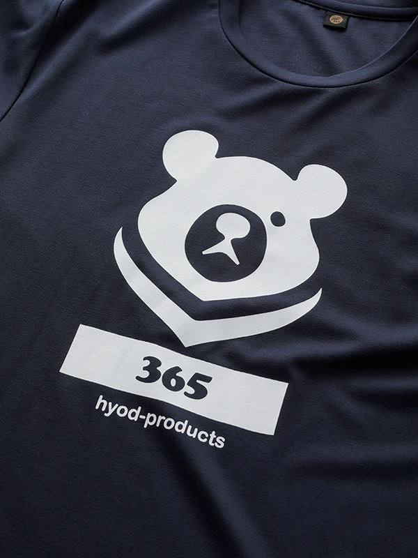 季節限定生産 HYODの愛されキャラ、“365BEAR”デザインのショートスリーブTシャツ。 フロントには365BEARをプリントしています。 生地にはかいた汗をすばやく吸収発散し、不快なベタつきを軽減する快適素材を採用。 夏場の通気性を考慮した、サラっとした着心地が心地よいショートスリーブTシャツです。