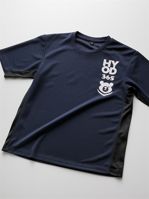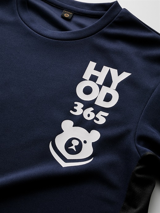 HYODの愛されキャラ、“365BEAR”デザインのショートスリーブTシャツ。小さいロゴが主張しすぎないシンプルなデザインで着回しやインナーとして重宝してくれます。生地にはかいた汗をすばやく吸収発散し、不快なベタつきを軽減する快適素材を採用。夏場の通気性を考慮した仕様です。