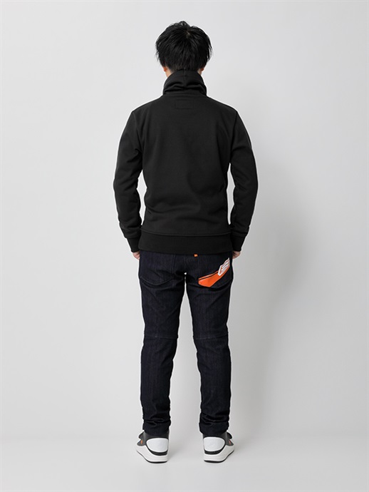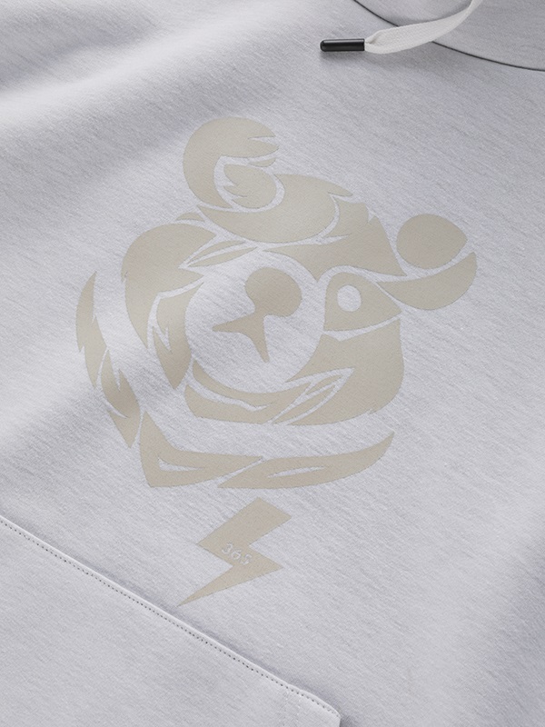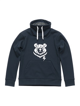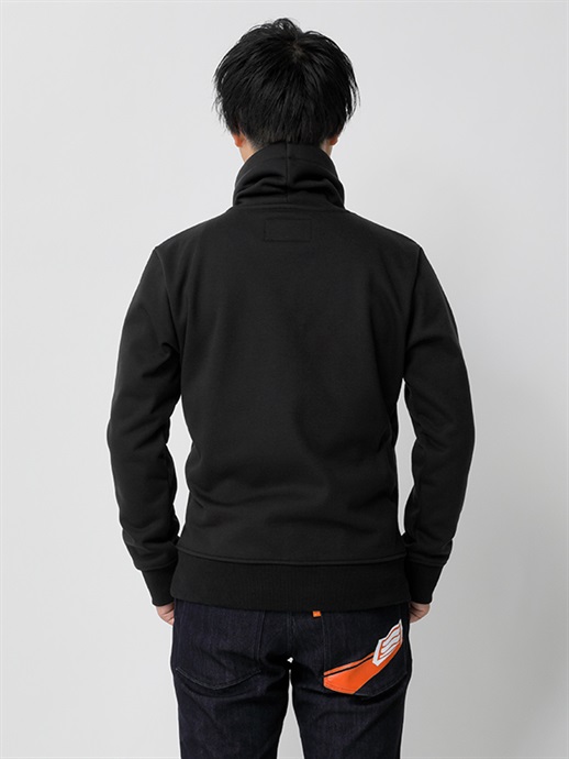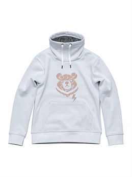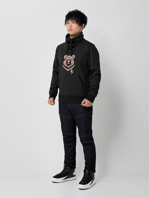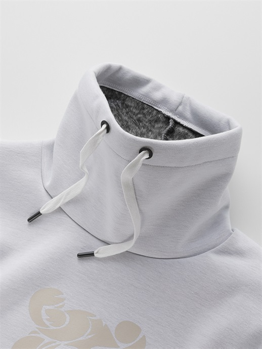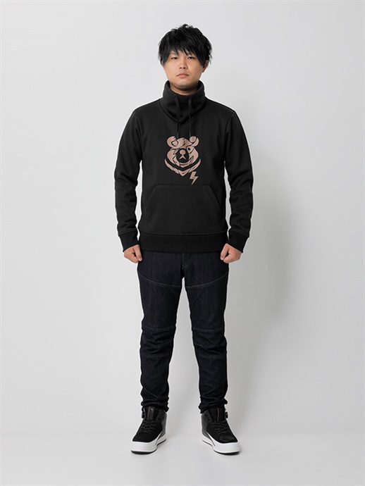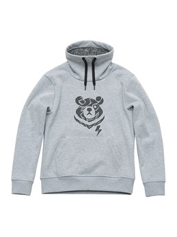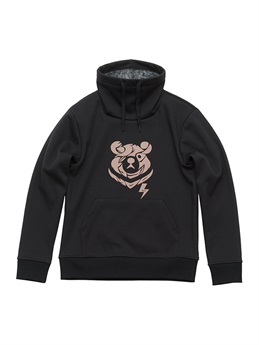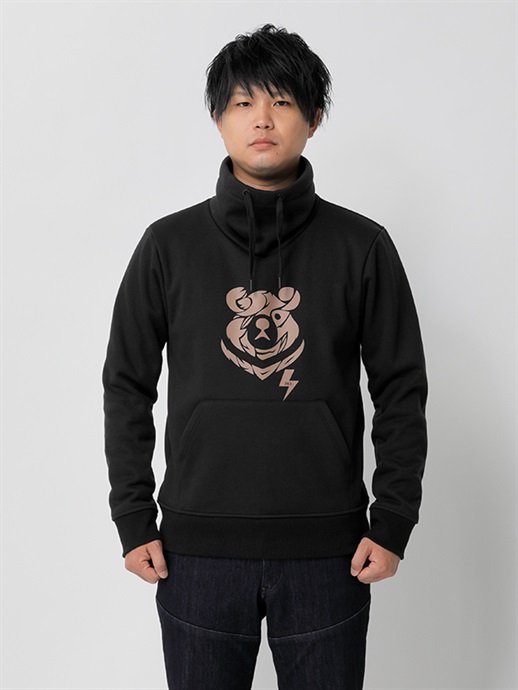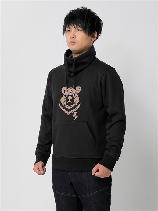 季節限定生産 トライバル・ベア―を胸にレイアウトしたハイネック仕様のウインドブロックヒートアパレル。スウェット素材に防風フィルムをボンディング、さらに柔らかさと肌触りにすぐれたシャギー素材を使った3層構造が、抜群の保温性能を発揮します。首まわりはすっぽりと覆うことのできるハイネックのモックネックスタイル。ドローコードをネック内側のホールから首側に引き出して着用することもできます。寒さをシャットアウトし、カジュアルに冬を楽しむための一着。