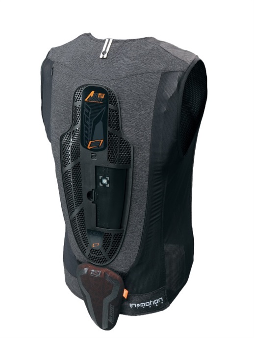 レザースーツ着用時に、保護エリアを延長できます。面ファスナーで簡単に着脱が可能、素材には超衝撃吸収材D3O®を採用しています。