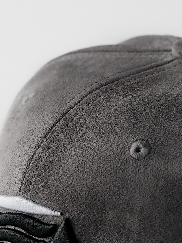 フロントパネルとバイザー、それ以外の部分すべてを落ち着きのあるスエード調で仕上げています。素材はポリエステル100%です。