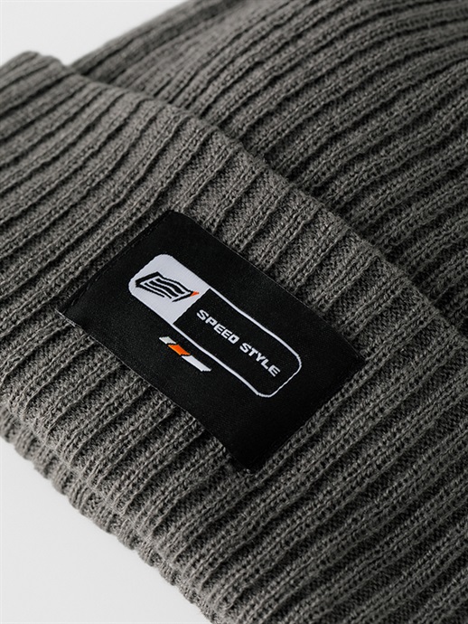 フロントに、クレストマークと“SPEED STYLE”の織マークを縫い付けています。