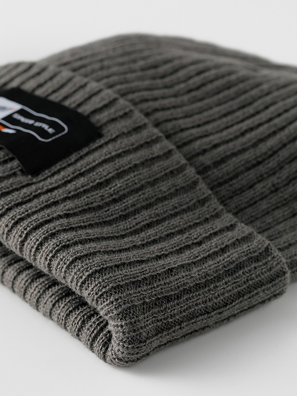 厚すぎず薄すぎないほどよいボリュームのリブ編みニットです。素材は保温性と耐久性にすぐれたアクリル100%です。