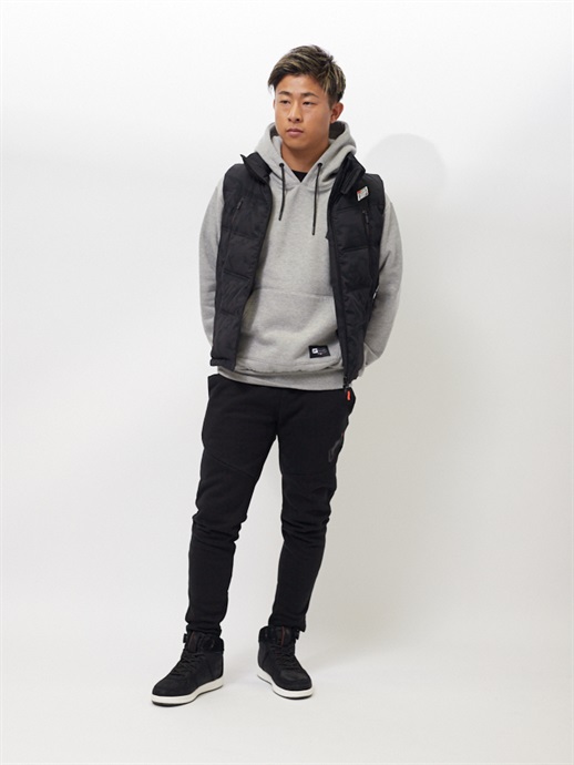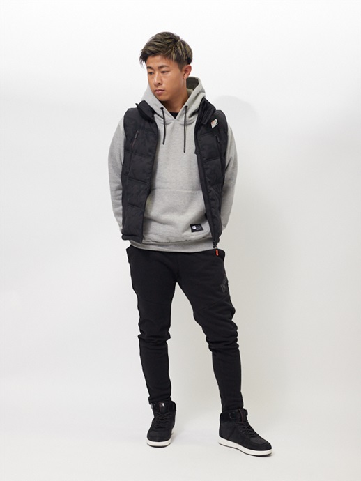 肩幅を広めに取った、ややゆったり目のシルエットのプルオーバーパーカです。ほどよいゆとりがありながら、リブ仕上げによるメリハリのあるシルエットを実現しています。