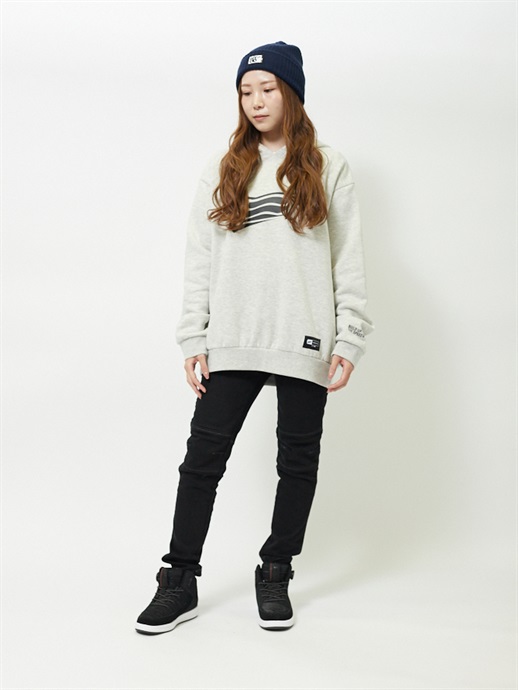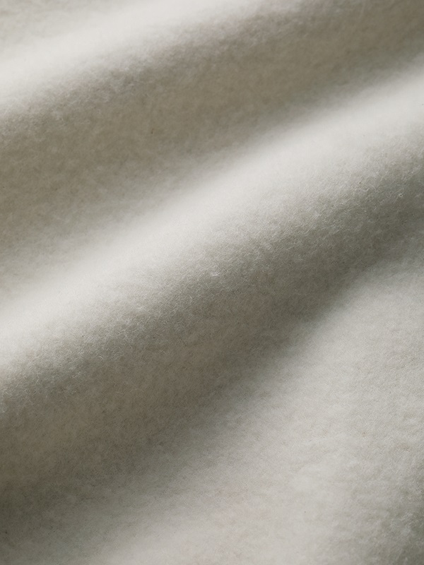 コットンとポリエステルをブレンドした、軽やかでエアリーなスウェット生地で仕上げています。裏起毛により、滑らかでやさしい触り心地、そしてふんわりとした着心地が特徴です。