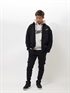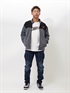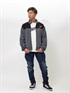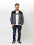 胸部分をストレートに切り替え、左胸にワンポイントでクレストマークの刺繍を施しています。両脇にはファスナー式のポケットを装備。左裾には織マーク付きです。