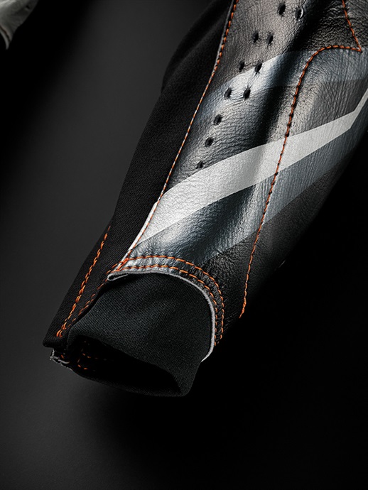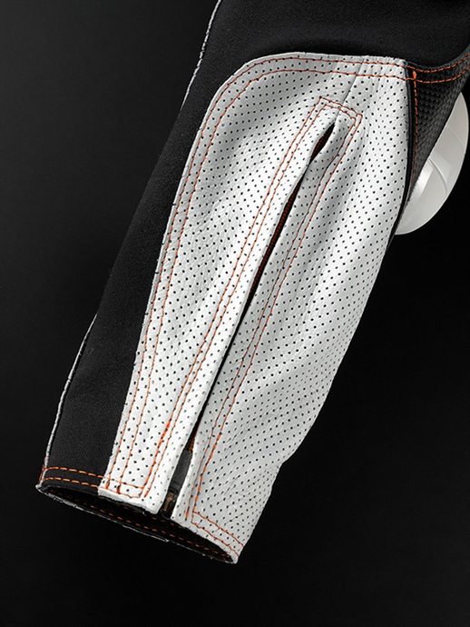 袖口には柔軟性に優れたニット素材を装備。HYODレーシングスーツのフラッグシップモデルであるダイナミックプロシリーズにも標準装備されているプロライダー仕様で、袖口の肌への干渉(ゴロつきによる違和感)が大幅に軽減され、スムーズなスロットルワークを実現します。