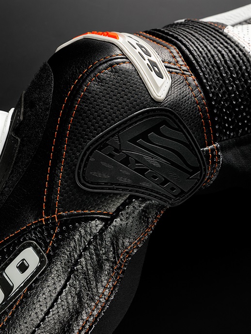 ニーグリップによるレザー表面の擦れを軽減し、マシンのホールド感を向上させるニーホールドプロテクターを膝内側に装備。素材には過酷な環境下でのライディングを考慮して、耐久性にすぐれたウレタン素材を採用。アスリートスペックのレーシングスーツにのみ装備され、ニーグリップによるマシンのホールド性を高めることにより、ライディングへの集中力を高めます。