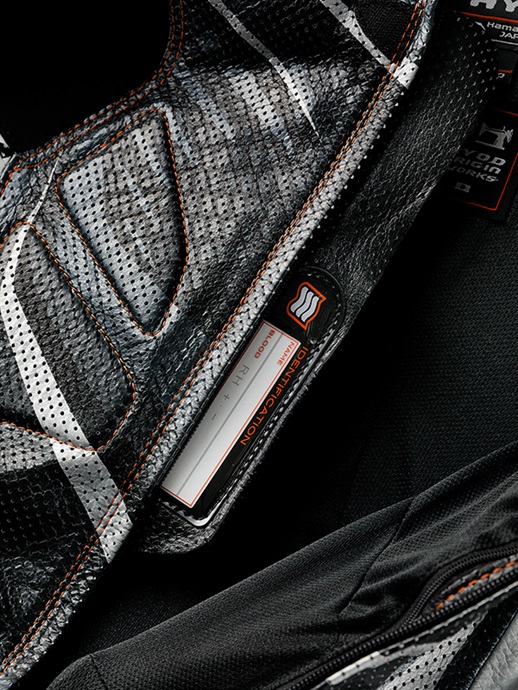 ヒップ(腰サイド)にD3O® ovalタイプ×4、バタック(臀部)にD3O® moduleタイプ×2を装備するHYODサポートライダーオススメのプロテクションコンポーネントを標準装備。運動性を損なわず転倒による腰や大腿部のダメージを大幅に軽減することができ、ハイサイドによる転倒着地時やスリップダウンによる滑走時などに効果を発揮します。