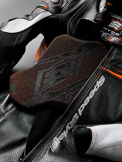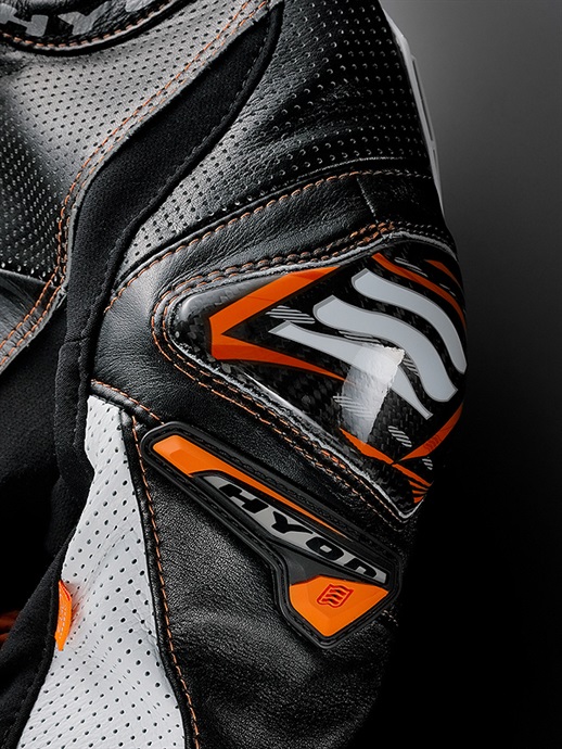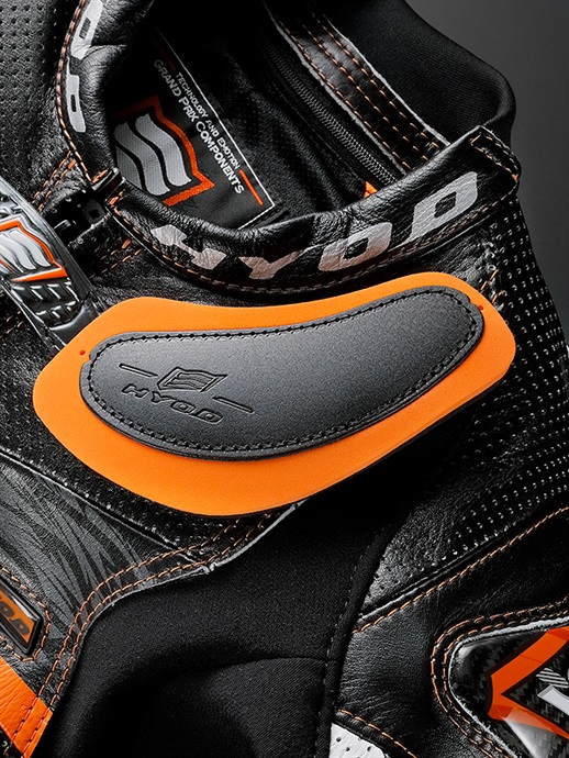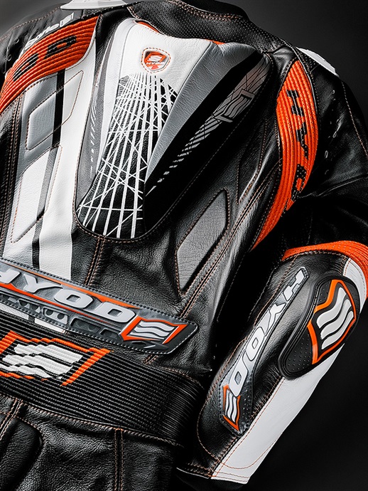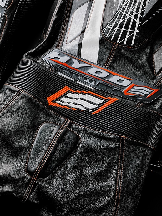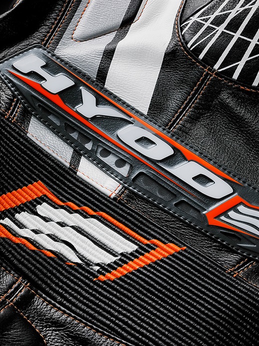 近年のヘルメットに採用される、後方に大きく伸びたディフューザーに対応した新型のネックガードや新デザインの各部ワッペンを備え、見た目にも従来モデルから印象を刷新。 機能面、デザイン面ともにHYODレザースーツの新たなステージを体現したモデルです。