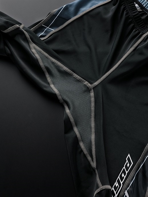 伸縮性があり抜群のフィット感の運動追従性に優れた東レ「プログレスキン™」を使用した、ライディング用アンダーパンツのグラフィックモデル。スピード感溢れる昇華プリントデザインを採用したHRU003SPです。