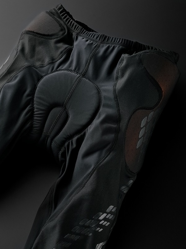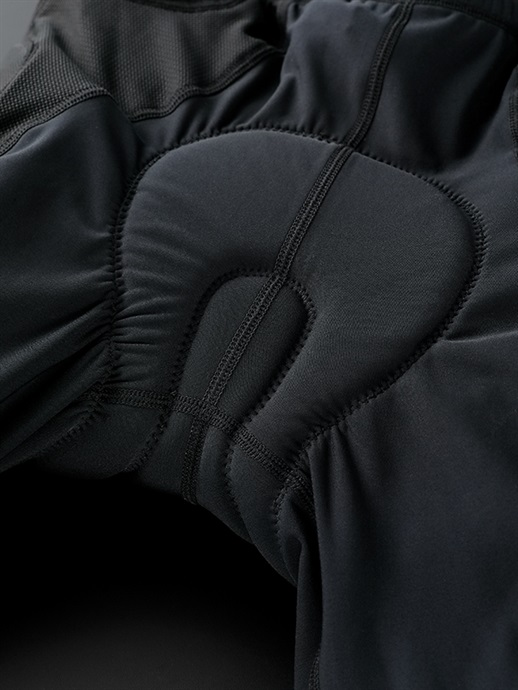 膝と尾骨にはD3O® LP1 L1(CE規格レベル1)、腰サイドにはパンチメッシュを施した6mm厚のウレタンパッド、股部には乗車時の疲労を軽減させる低反発パッドを装備。