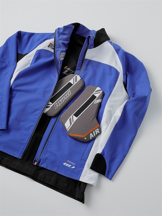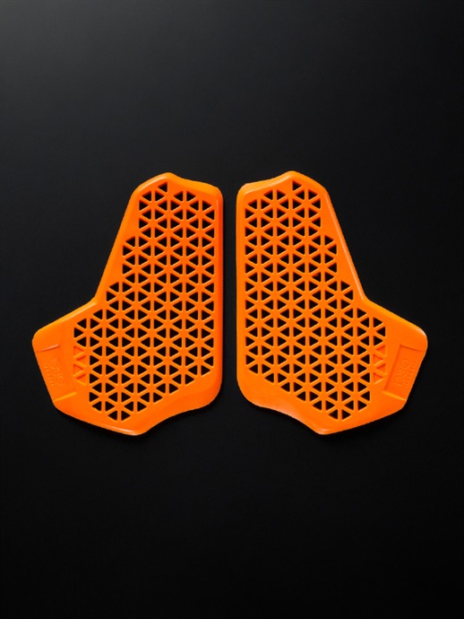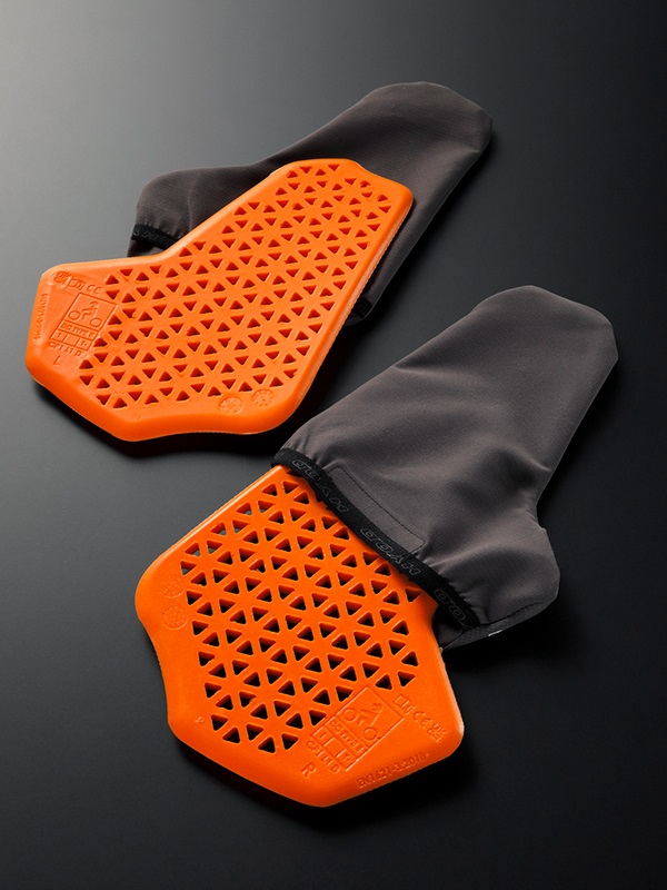 通気性と安全性を両立したセパレートタイプのチェストプロテクターです。本体には衝撃吸収素材D3O® CP1・L1を採用。チェストプロテクターのCE規格EN1621-3:2018レベル1をクリアしています。広い範囲を保護エリアとするCE規格TypeB仕様です。優れた通気性を持つジオメトリーデザインのエアベンチレーション構造により走行風を取り入れ、夏場の胸部分の蒸れを解消することができます。一般的なチェストプロテクターと違って、HYOD D3O®エアチェストプロテクターに装備しているD3O® CP1・L1プロテクターはソフト(柔らかく)でフレキシブル(しなやか)です。そのため、装着時に違和感がなく着けているのが日常化できる理想のチェストプロテクターといえます。