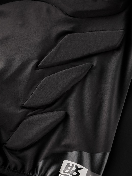 チェスト部分のプロテクターは、通気性のよいワンピースタイプのハニカムメッシュ形状を採用し、肩にD3O®LP1 L1、胸にはD3O®CP1 L1、背中にD3O®BP4 L1 (すべてCE規格レベル1)を装備。各D3O®プロテクターはCE規格のコールドオプション(-10℃)もクリアしています。