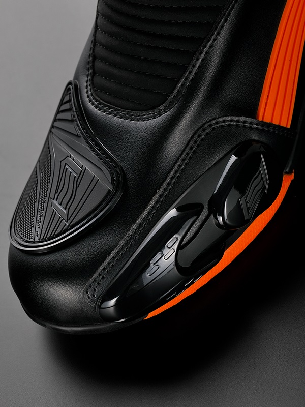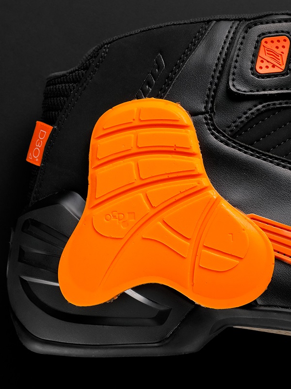 くるぶしの外側と内側には、ソフトでフレキシブルなD3O®プロテクターをインサートしています。D3O®は分子自らが衝撃の強さを感知して、結束して衝撃を吸収するプロテクション素材です。HYODレーシングレザースーツやジャケット、パンツのなど、多くのアイテムでD3O®プロテクターは使われています。