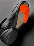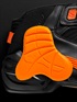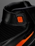 成形したヒールプロテクターがかかと全体のホールド感を高め、万が一の転倒の際のかかと部分の損傷を軽減します。また、かかと後ろ側の上側にテキスタイル素材のフレックスパーツが、足首のフレキシブルな動きをサポートしています。