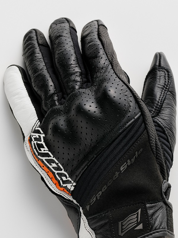 HYODレーシンググローブのノウハウをストリートユースに進化させたパターンを採用しています。指には、指の曲がりを妨げないインナーパットを取り付けています。