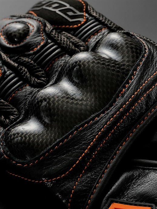 ナックル部は、レーシンググローブ譲りのアウターカーボンプロテクター仕様。