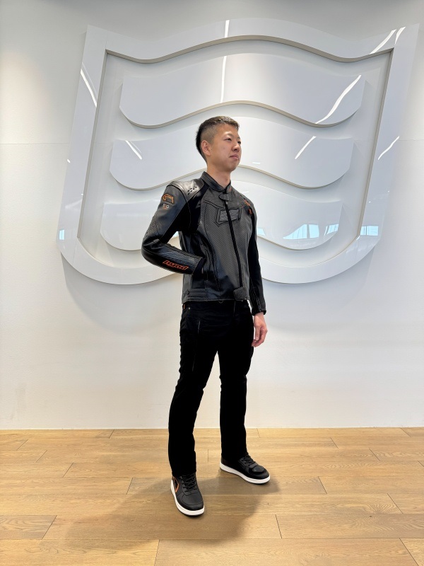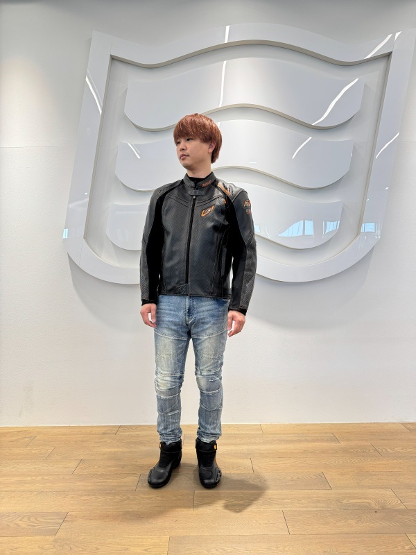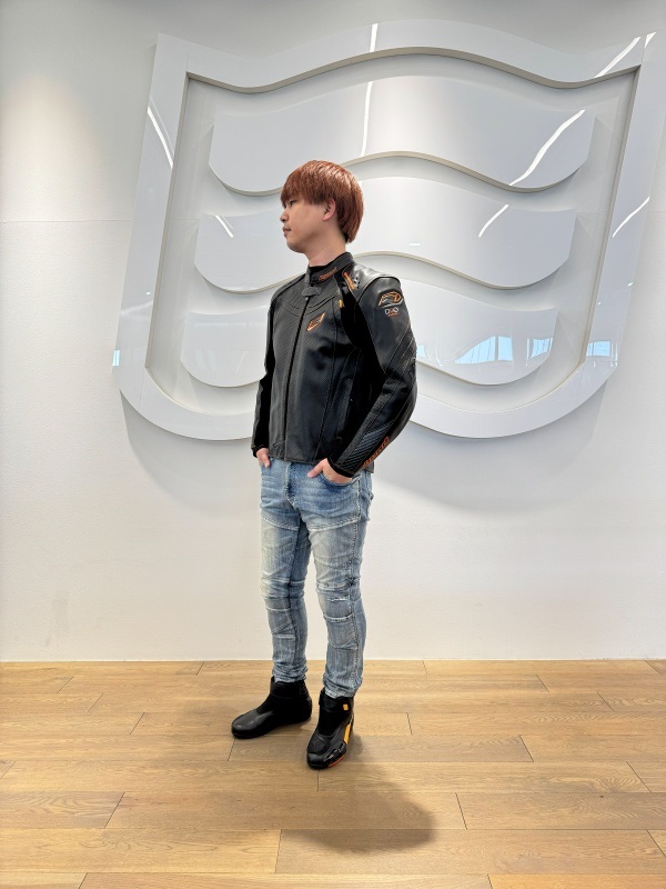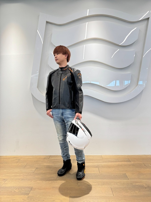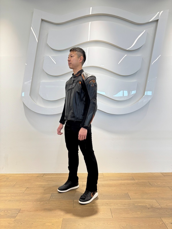 ジャケットの下に身につけるエアバッグウエア“AIR-BOOST”。日本人専用設計で、安全性能をアップグレードできます。