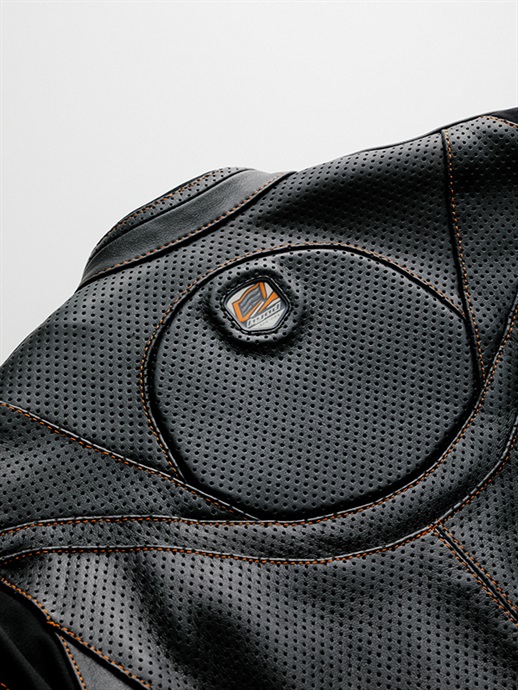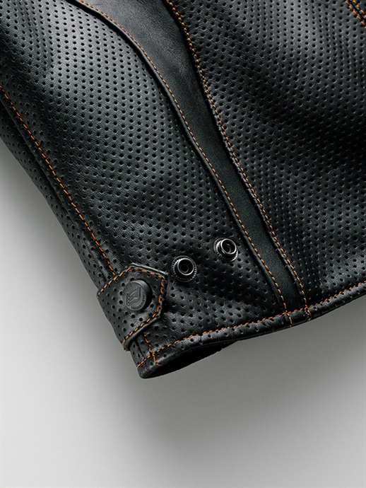 HYOD ST-Xのスポーツレザーの代表モデルが“MINERVA D3O®”です。レーシングレザースーツをストリートライディング用にアレンジしたHYOD ST-Xパターンを採用。デザインは、レーシングレザースーツ“MINERVA”からのインスパイア。上質なフラットステアレザー(ベンテッド仕様)をベースに薄く柔らかなエアースルー構造の D3O® Diablo™プロテクターを肩と肘に搭載。また、ストレッチ素材のフレックスパネルや袖内側のスナップボタンで、EVOKEシリーズのインサレーションウエアとの連結などスポーツレザーウエアとして充実したファンクション(機能)を搭載しています。運動性と快適性を両立した“スポーツレザー”という新たなジャンルを切り拓き、スポーツライディングからストリートライドまで幅広く着用できるレザーウエアとして、現在に渡るまで多くのライダーから支持を得ています。