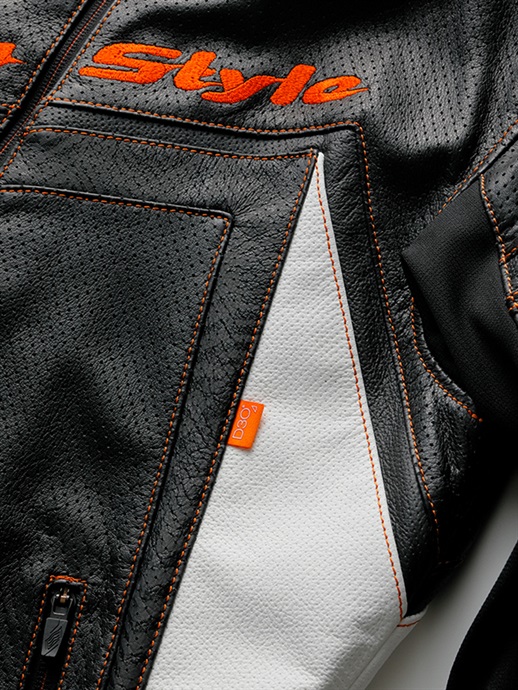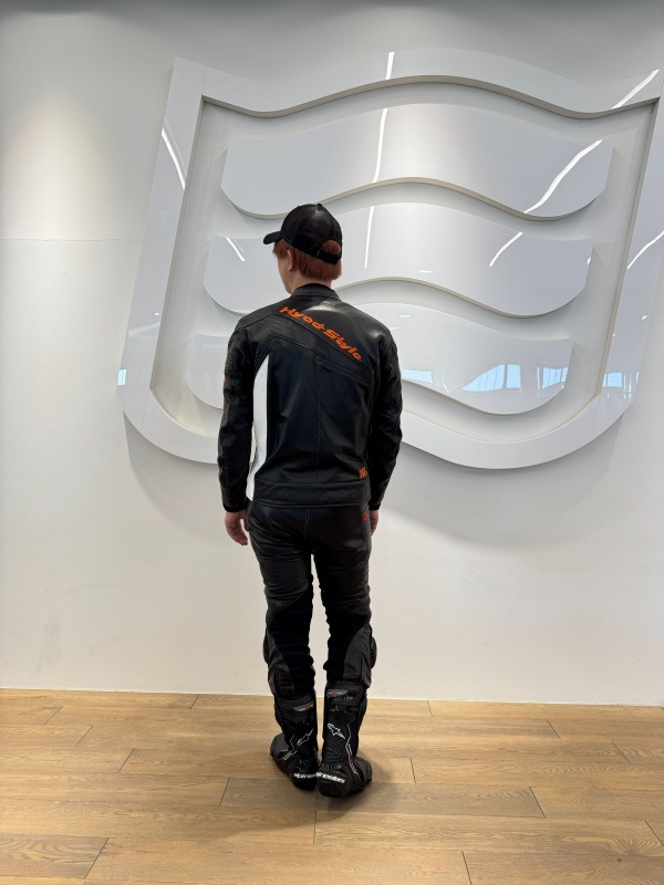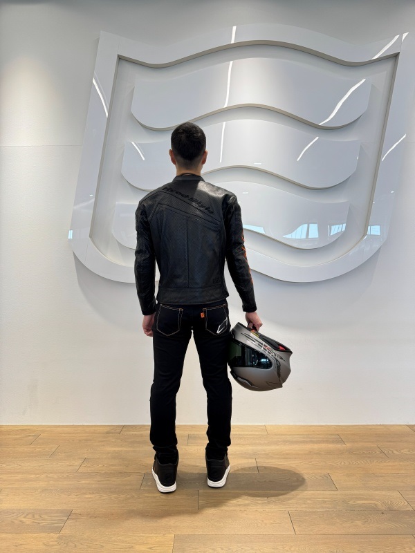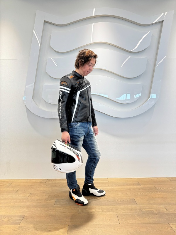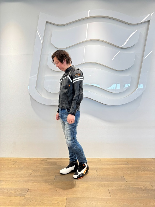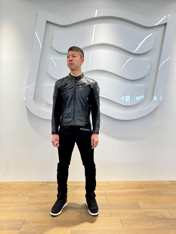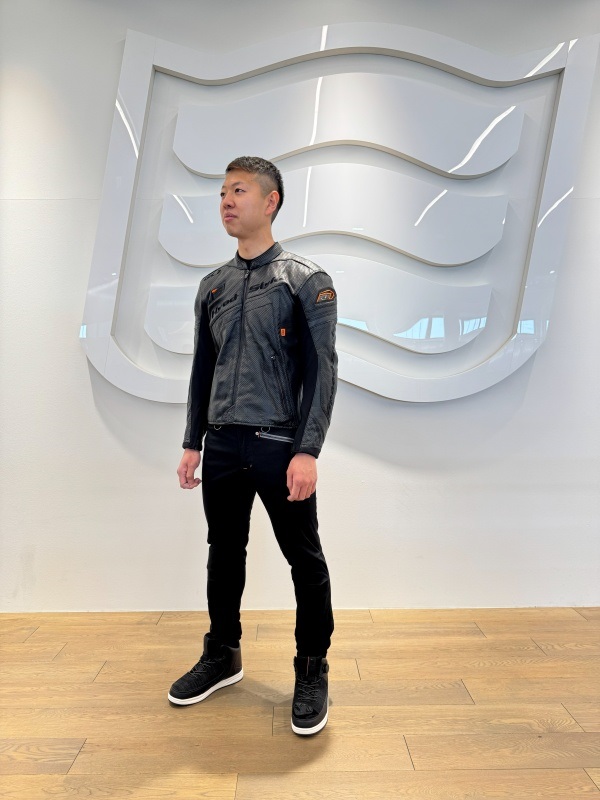 ジャケットの下に身につけるエアバッグウエア“AIR-BOOST”。日本人専用設計で、安全性能をアップグレードできます。