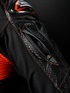 “DEVAC SP D3O®(デバック・エスピー・ディースリーオー)”は、HYODレザースーツ譲りのスピード感溢れるグラフィック、ダイナミックプロレザースーツと同仕様のエルボープロテクトスライダーや両肩にひと際目を引くフラッシュドサーフェイスしたカーボンプロテクターを装備した、スポーツライディングレザージャケットのハイスペックモデルです。