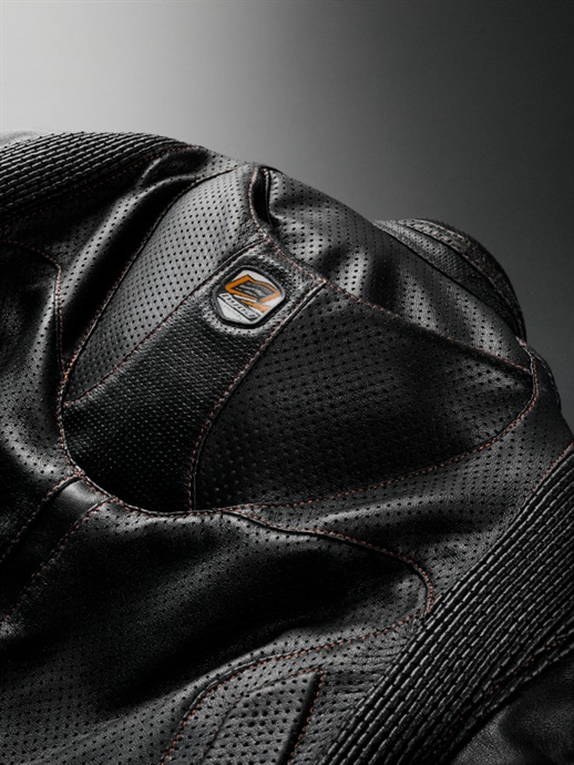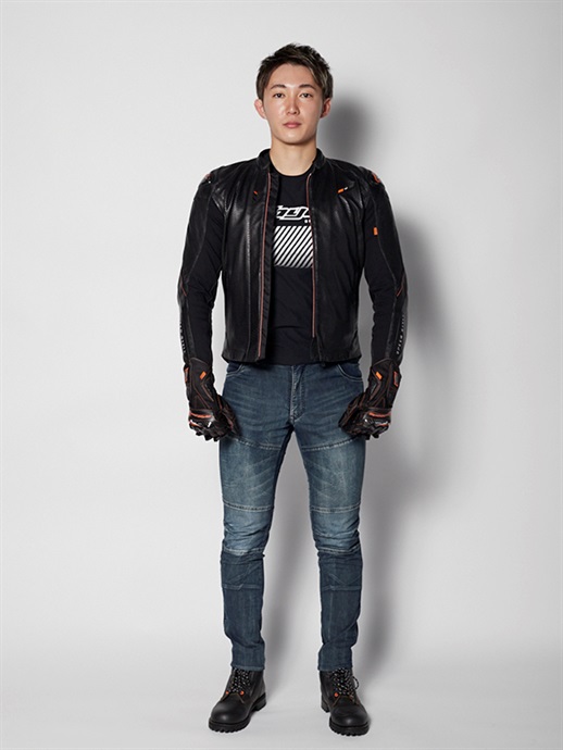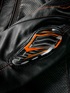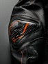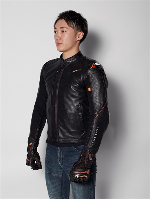 背中上部にネックガードを装備しています。レーシングレザースーツに装備しているネックガードをコンパクトにした、ストリートウエア専用のネックガードです。ヘルメットに干渉しないサイズと形状で設計されています。