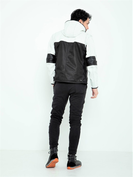 またパーカーフードスタイルにすることでネック周りのサイズ調整とスタイルの幅を実現。上質でスマートなスタイルと快適なライディング性能を求めるライダーにとって必要な要素をすべて詰め込んだ新感覚のクロスオーバーレザージャケットです。