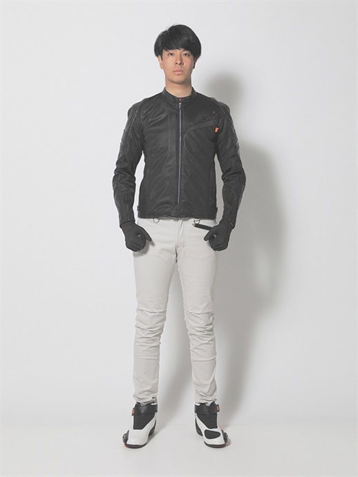 HYOD AIR-BOOSTはHYODが日本人の体型に合わせて独自に開発した専用パターンとストレッチ素材を組み合わせることで、ライディング時のフィット感にすぐれ、動きやすくて着ていることを感じさせない着用感となっています。サイズはSサイズから3Lサイズを取り揃え、体型に合うサイズをお選びいただくことでより安全性は高くなります。また、本体前面にエアスルーホールを配置するほか、フロントとサイドに通気性と伸縮性のあるメッシュパネルを採用。さらに本体裏地には通気性にすぐれるダブルラッセルを採用することで内側の蒸れを軽減し快適性を実現しています。レザーウエアからテキスタイルウエアまで、自分好みのアウタージャケットの下に着用できるHYOD AIR-BOOSTで安全性能をアップグレードできます。